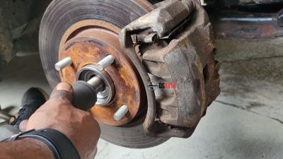 - Съем ступицы: Открутите болты, крепящие ступицу к поворотному кулаку, и снимите ступицу, использовав съемник.